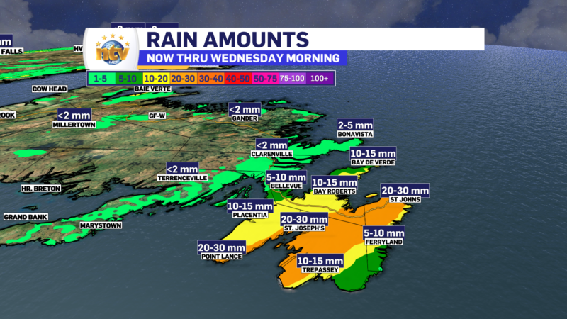 Areas of showers across a good bit of the Province have started our Monday off on a bit of a soggy note. The showers will generally move offshore over the next few hours and the clouds will follow suit. It may be hard to imagine now, but by early afternoon, much of N.L. will be in the sunshine. Highs today will be in the teens to near 20º.